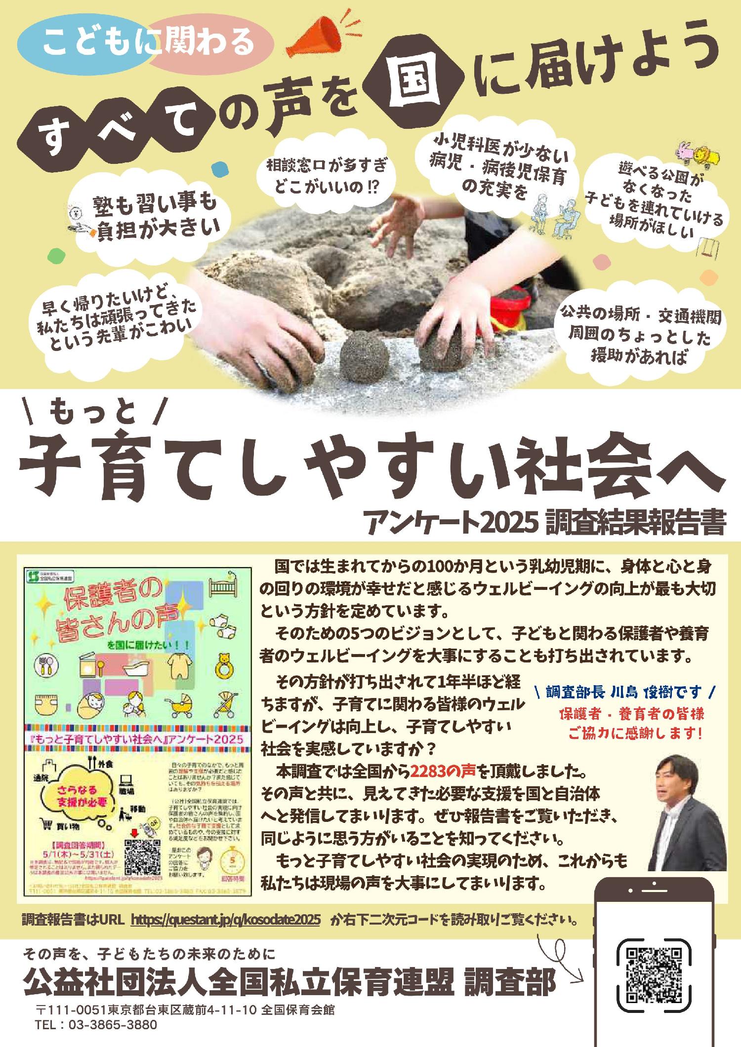 【全私保連メール】「『もっと子育てしやすい社会へ』アンケート2025」の調査報告(2025年8月26日号)
